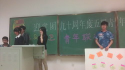团委携手仪器科学与电气工程学院团委共同主办了以“喜迎建团九十周年,共度五四青年佳节”为主题的院际青年联谊会。联谊会于2012年5月4日晚6:30在中心校区李四光楼302教室举行,国产高清