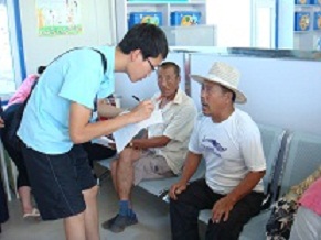暑期“三下乡”农民健康体检实践小组一行24人来到榆树市,在之后的四天里要在榆树市保寿镇黑林子村和闵家镇卫生院为农民进行健康体检。由于榆树健康体检人数较多,工作量比较大,要求待检农民早餐空腹,所以要求工作人员提前到场,指导老师和同学们都五点左右就起床,然后再车上把早餐解决,如果遇到道路特别远的起床还会更早。在这四天里,天气变幻莫测,刮风下雨阴晴不定,特别是黑林子村的条件比较艰苦,给活动带来了很大的困难,但是所有的队员没有一个说苦喊累的,都认真的完成自己的任务,咬牙坚持过来。在榆树“三下乡”的几天里,志愿者们为村民们量血压、血糖、体测,协助老师和医生采血、做心电,向他们讲述有关健康的知识;遇到血压、血糖不正常的村民,及时向他们普及健康知识,并告诉他们如何注意饮食和生活习惯,预防高血压和糖尿病的发生。