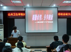 在学院三楼报告厅举行了2012年暑期“三下乡”社会实践活动总结大会,学院学生工作办公室苏国范老师以及全体三下乡社会实践活动志愿者参加了此次总结大会。国产高清