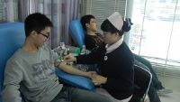 12级的新生。虽然献血的过程中有的志愿者产生了些微的不适,但是从他们坚定的目光中仍可以感受到他们无私奉献的光荣。在献血之后,一位志愿者对记者说:“我们今天的付出,会换取明天更多人的健康。”血站也为这些献血者们贴心的提供了营养品。志愿者手捧献血证和血屋的工作人员告别并相约明年再见。