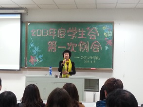 会上,学生会主席对所有学生会新成员表示欢迎,并对此前学生会开展的各项学期工作做了简要总结。随后,学生会各部新成员依次上台进行了自我介绍,他们或风趣幽默,或思维缜密,很快便融入到这个大家庭。会中,吴晓辉主任发表了讲话。她对学生会各项工作予以了肯定,并对收获的新生力量表示祝贺。接着,她从不同方面对学生会工作做了指导,希望在新的起跑线上,学生会能弥补不足,继优思进。此外,吴主任还提到,为响应中共中央的号召,近日学院发表了“厉行节约,反对浪费”倡议书,希望大家“从我做起,从小做起”,“学会珍惜,做环保节约的践行者”。