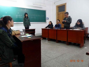 辩论队队长牛珊珊作为主席,往届辩论队成员担任评委团,12、13级全体辩论队成员分两场进行辩论。