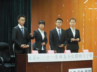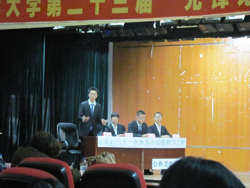主持人宣布开始后,由双方辩友分别自我介绍,并简单展示本方观点;之后,有请评委上场。主持人宣布比赛规则和评分标准。紧张热烈的比赛随即开始,本场比赛共四个环节。在整场辩论过程当中,国产高清
