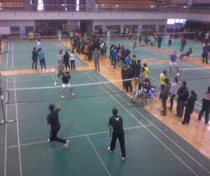 比赛在中心校区体育馆进行,体育馆内不仅有参赛人员,还有各个代表团的拉拉队们。场面气氛活跃,拉拉队们都鼓足劲为自己学院加油。各个学院的参赛人员在赛场上尽情发挥,比赛中默契的配合,灵活的走位,多变的球路,有力的击杀令观战的同学们目不暇接。比赛分男女单打和双打比赛,国产高清
