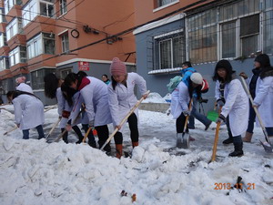 学子是寒风中一道暖心的亮丽风景。他们忙碌着,每个人都用尽全力破开坚冰,扫除积雪:部分路面由于汽车过往,积雪被压得非常厚实,但同学们不畏艰难,热情高涨,一点点地将其进行铲除清扫。活动最后,国产高清