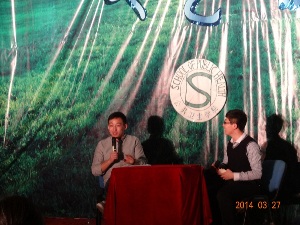 活动以访谈的形式开展,同时伴有与观众的互动,气氛轻松活跃。首先,主持人播放一个小短片介绍并请出王特,随之伴着ppt中的图片,便是嘉宾讲述。讲述具体由“说出你的故事”及“终南之路”两个环节构成。王特主要向大家讲述了他优秀的学习方法,以及两次自行车骑行去西藏、环海南岛自行车赛和四十公里马拉松比赛的经历。其中,王特在考研方面给了大家许多中肯实用的建议与帮助。接着是“指点迷津”环节,王特一一解答了现场观众提出的问题。随后是抽取幸运观众环节,王特向幸运观众赠送了自己推荐并签名的书籍,同时合影留念。最后,王特以一曲“海阔天空”将此次活动推向了尾声。