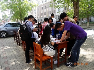 志愿者工作部在新民校区第一教学楼前举行了世界禁烟日系列活动之走进校园活动。