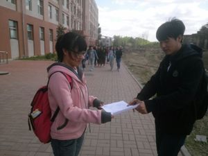 此次宣传活动共分两个部分。首先是由男生负责悬挂宣传条幅,;与此同时另一些同学负责发放关于红十的有关知识和精神的传单,意在宣传红十精神,并向同学们认真讲解世界红十字日的由来和红十精神,增进同学们对其的了解,国产高清