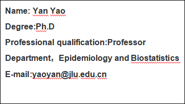 Sun M, Jiang Y, Sun C, Li J, Guo X, Lv Y, Yu Y, Yao Y, Jin L. The associations between smoking and obesity in northeast China: a quantile regression analysis. Sci Rep. 2019(通讯作者)